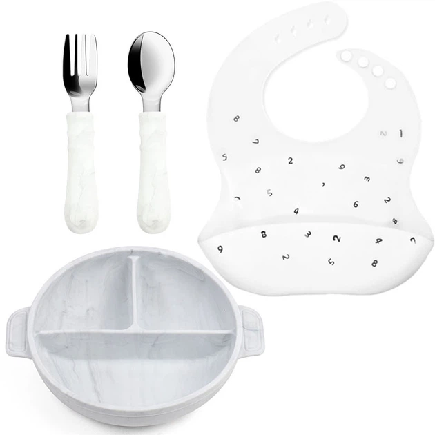 Набір дитячого посуду 2Life тарілка та прилади Y1 та слинявчик Букви Білий (v-12068)