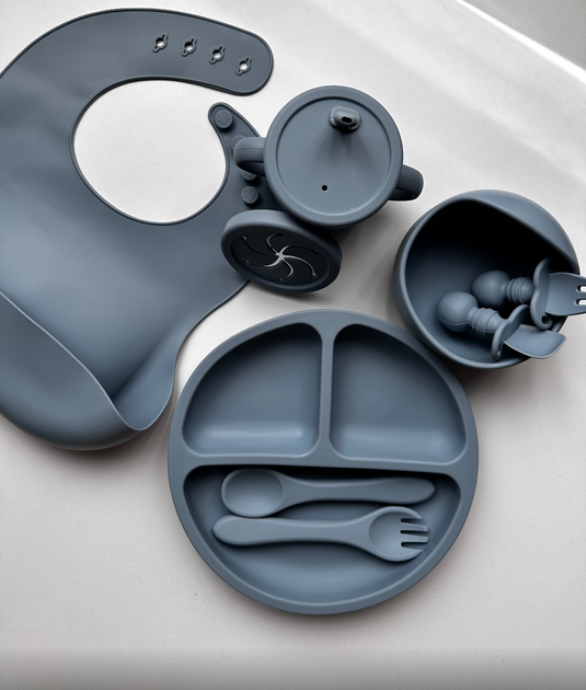 Силіконовий набір для годування малюка – 8 в 1. Колір : Морська глибина