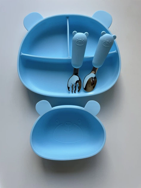 Посуд для першого прикорму силіконовий набір Ведмедик Міні блакитний