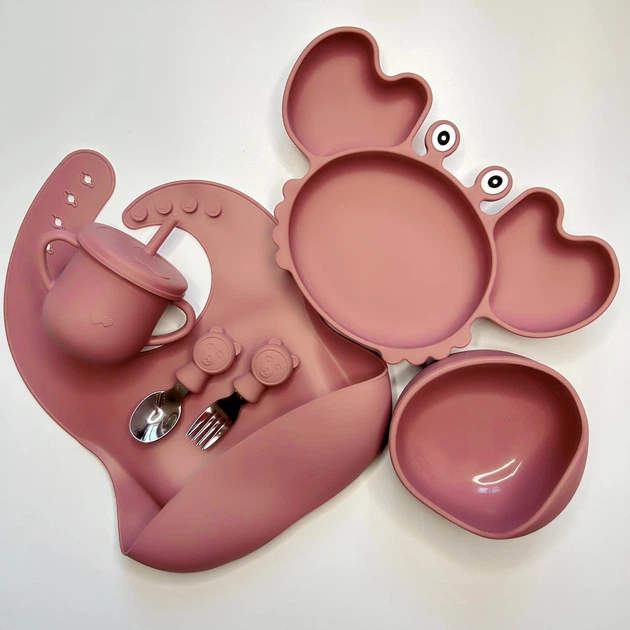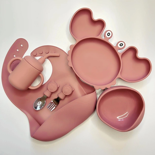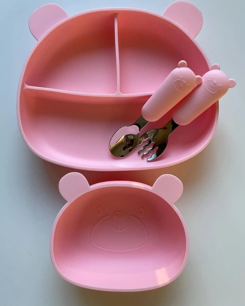 Посуд для першого прикорму силіконовий набір Ведмедик Міні рожевий