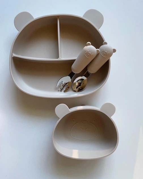Набір дитячого силіконового посуду Ведмедик Бежевий 4 од (0238)