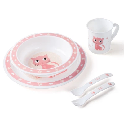 Набір дитячого посуду Canpol babies Cute Animals Котик Рожевий 5 предметів (4/401pin)
