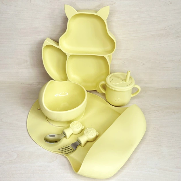 Посуд для першого прикорму силіконовий набір Ведмедик Міні жовтий