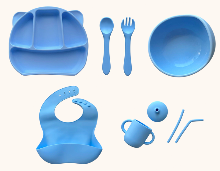 Набір дитячого силіконового посуду "Базовий з вушками" Блакитний (2770383048)