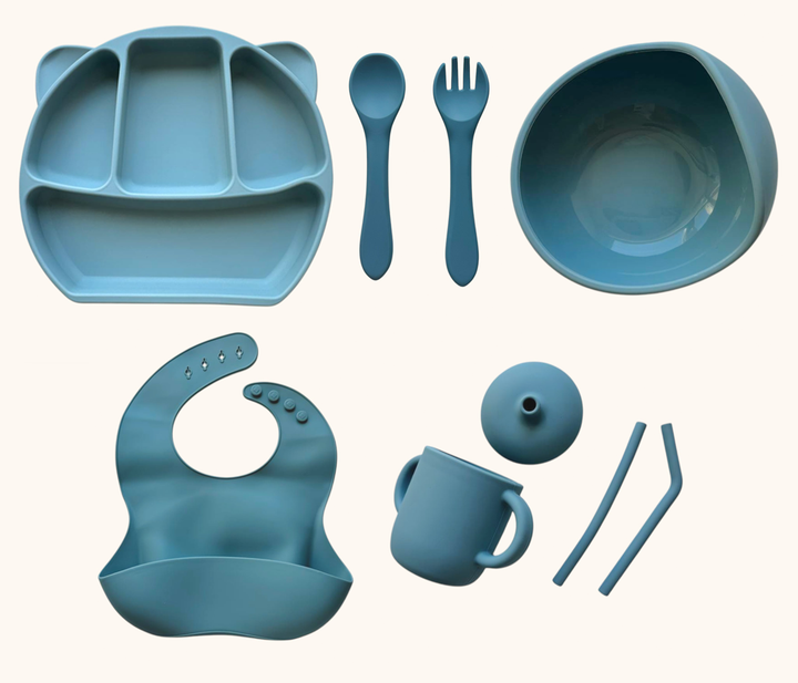 Набір дитячого силіконового посуду "Базовий з вушками" Димний блакитний (2770383045)