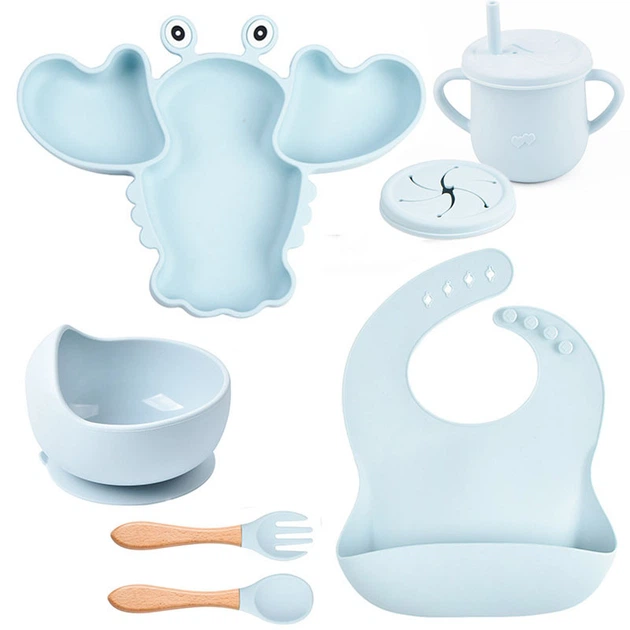 Набір посуду 2Life Y5 трьохсекційна тарілка Рак поїльник прибори слюнявчик Блакитний v-11187