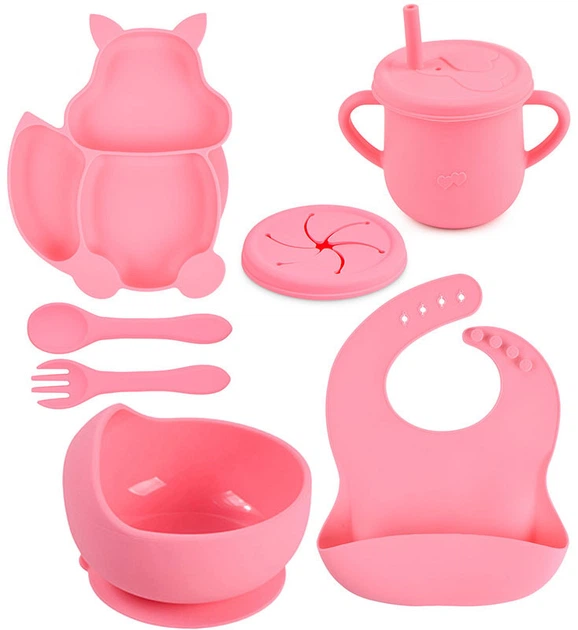 Набір дитячого силіконового посуду 2Life Y12 7 шт Рожевий (vol-10051)