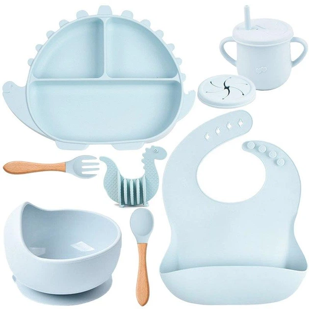 Набір дитячого посуду для годування 10 предметів із силікону
