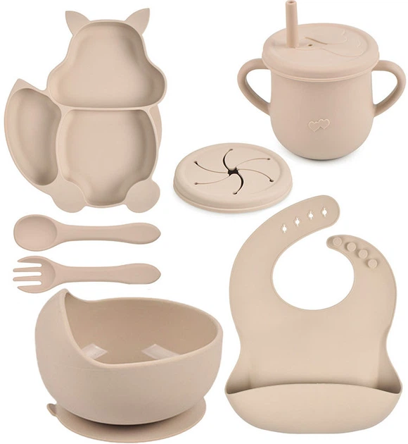 Набір дитячого силіконового посуду 2Life Y24 7 шт Бежевий (vol-10086)