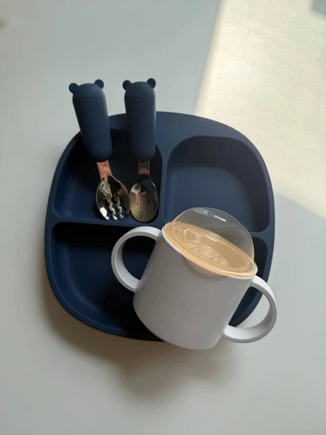 Силіконовий посуд для дітей, секційна тарілка, прибори, чашка з твердим носиком Темно синій
