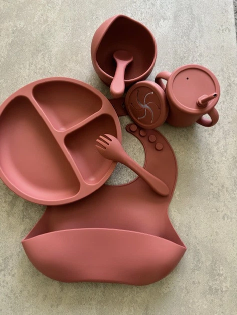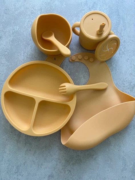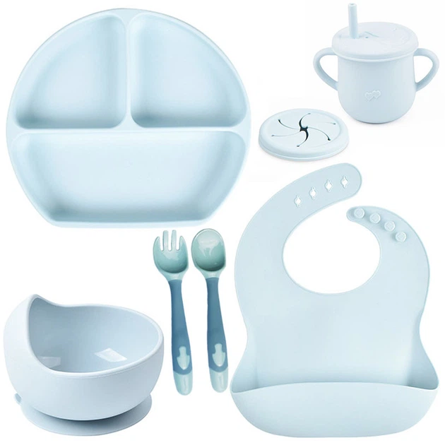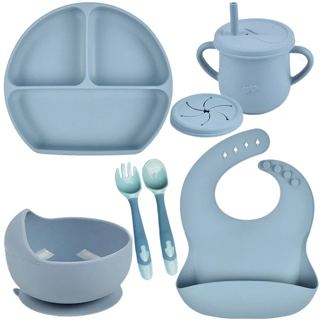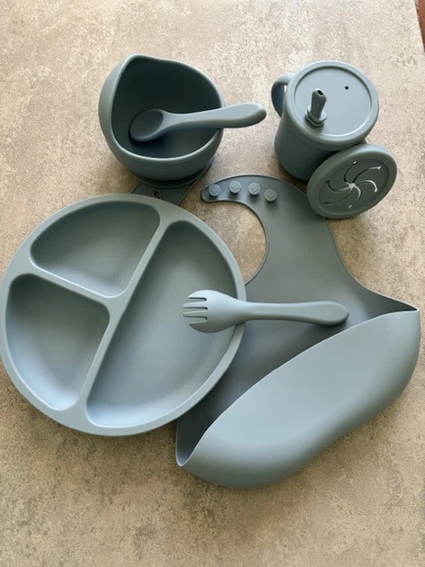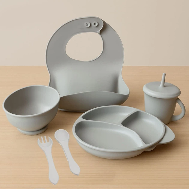 Набір дитячого посуду для годування, 6 предметів, СІРИЙ / Набір дитячого силіконового посуду