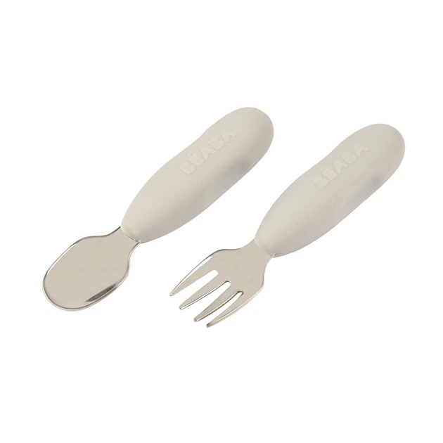 Набір ергономічних силиконових ложок Beaba 4+, зелений/сірий, 2 шт. 913574