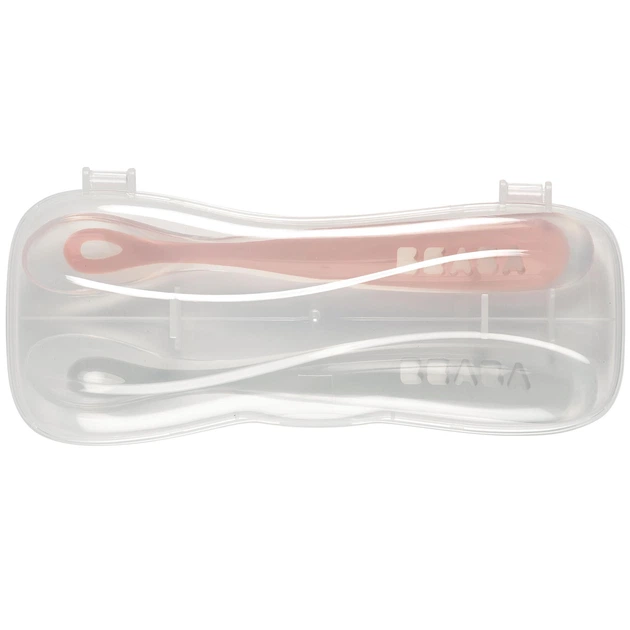 Набір ергономічних силіконових ложок Beaba 4+, рожевий/сірий, 2 шт. 913469
