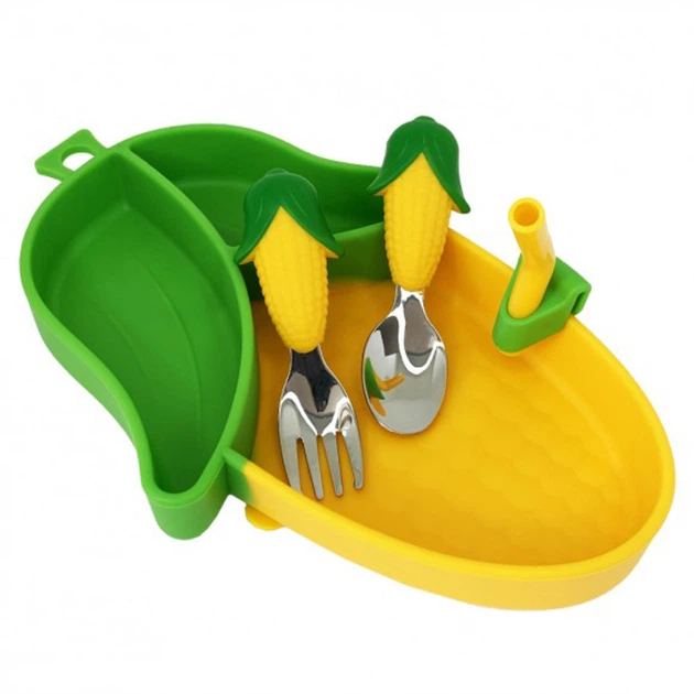 Силіконова тарілка з приладами "Кукурудза" MGZ-0124