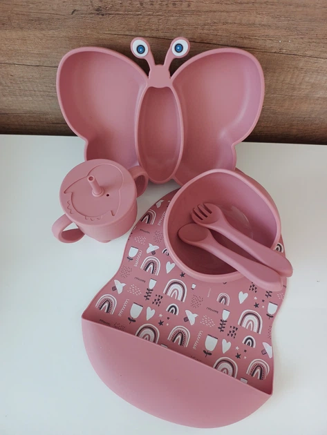 Набір дитячого силіконового посуду для першого прикорму Метелик Рум'янець