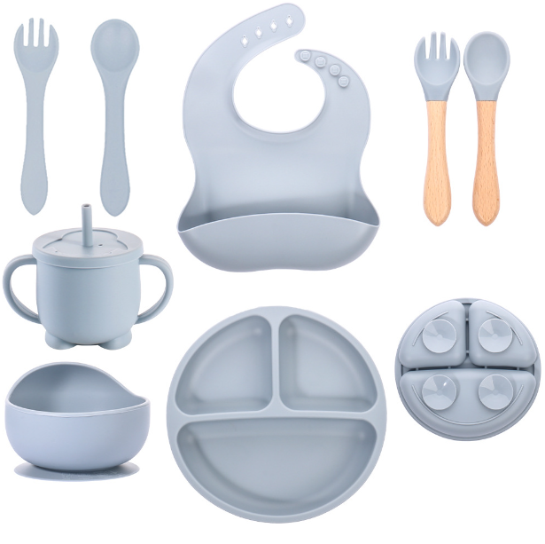 Набір силіконової посуди Korni для найменших 8 предметів дитячий посуд для годування блакитний (SVS)