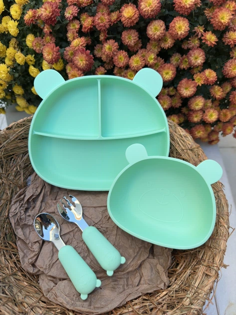 Набір дитячого силиконового посуду на 4 предмети з безпечного та харчового силикону Mint