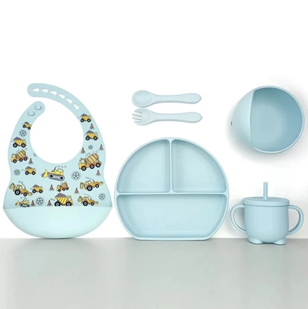 Набір дитячого силіконового посуду для першого прикорму 6 предметів Блакитний