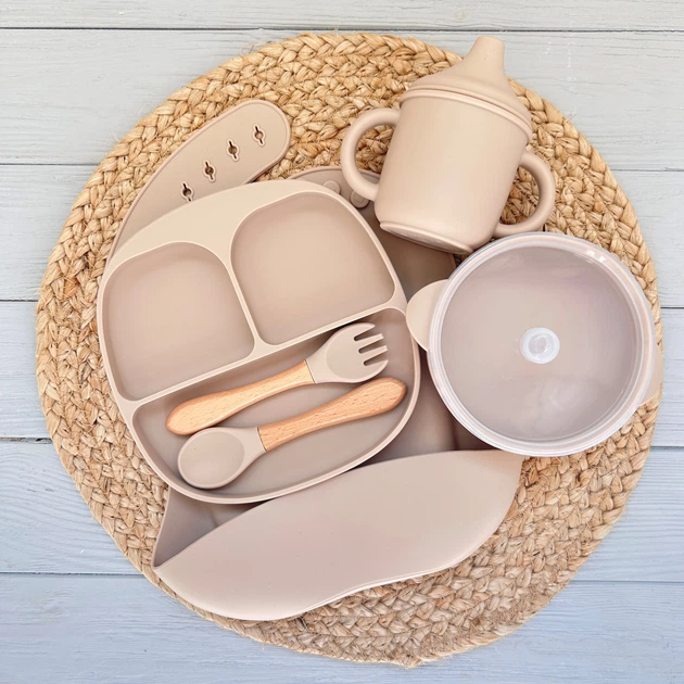 Набір дитячого посуду для першого прикорму сафарі бежевий