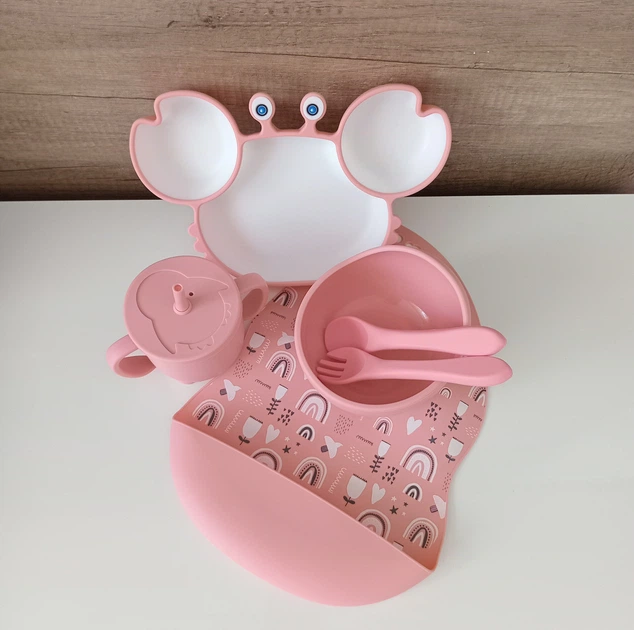Набір дитячого силіконового посуду для першого прикорму краб Рожевий корал