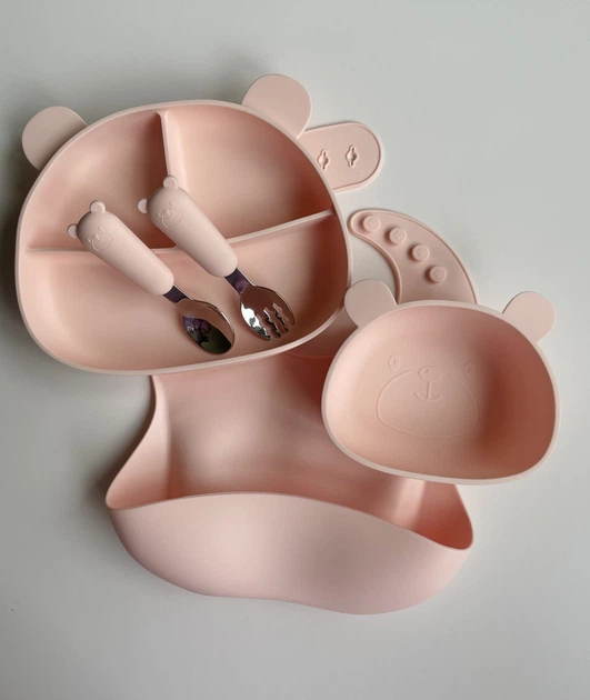 Набір дитячого силіконового посуду класичний рожевий Пакунок малюка