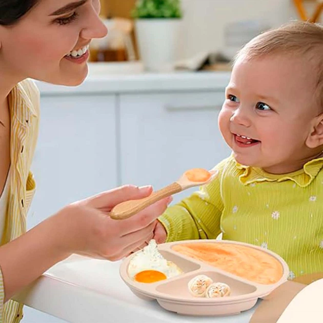 Набір посуду для годування (6 предметів), Бежевий / Дитячий посуд для підгодовування / Силіконовий посуд