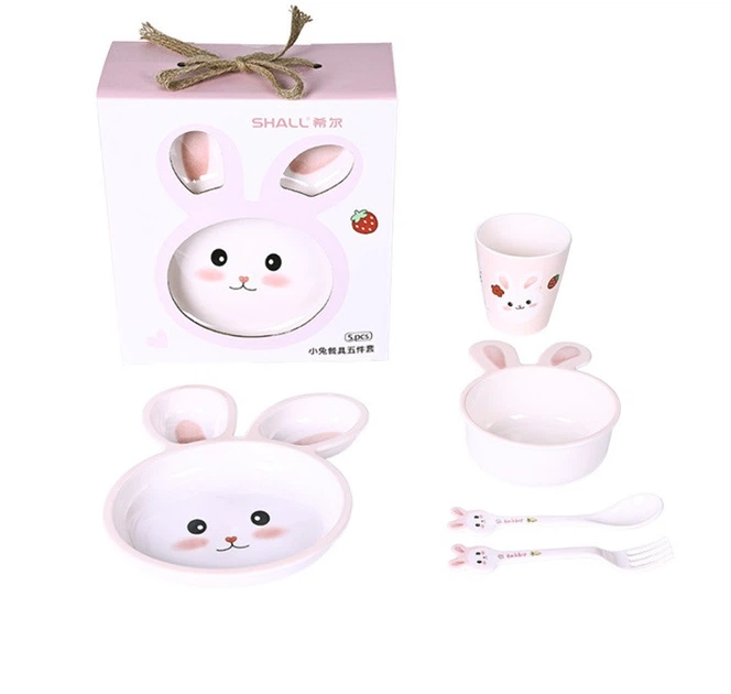 Дитячий набір посуду Зайчик 5 предметів Рожевий (18569)