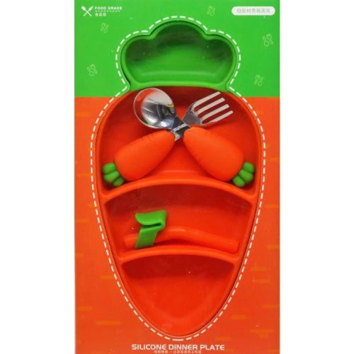 Набір силіконових столових приладів Food Grade для дітей з яскравими ручками моркви ложка вилка тарілка (540480)