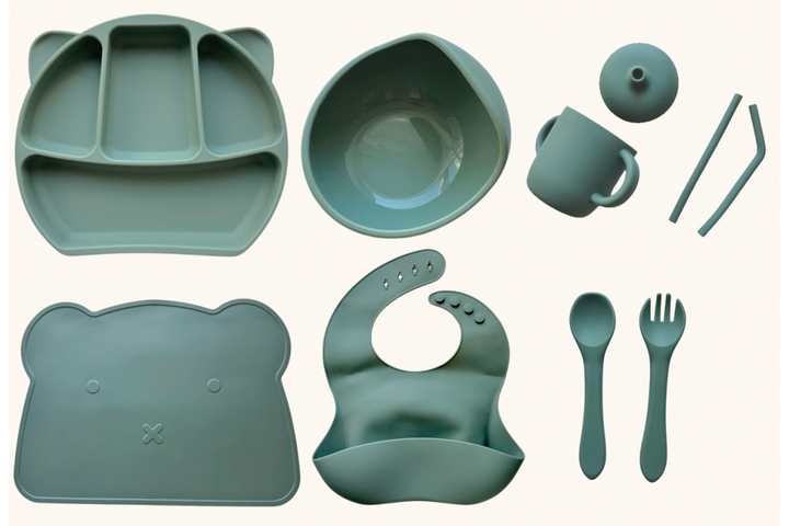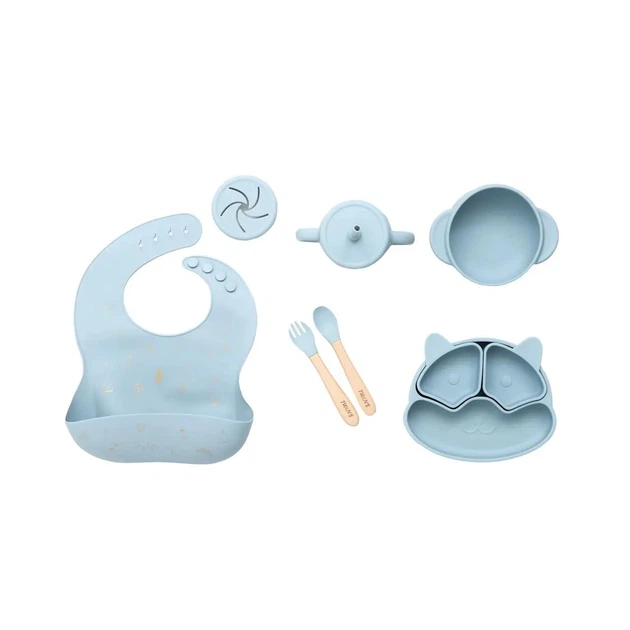 Набір силіконового посуду Twins на 6 предметів, Dusty blue