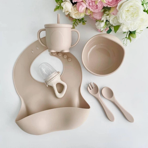 Набір силіконового посуду Twins на 6 предметів, Beige
