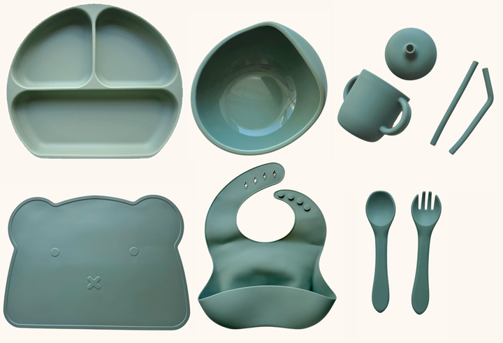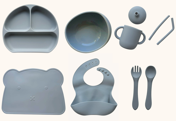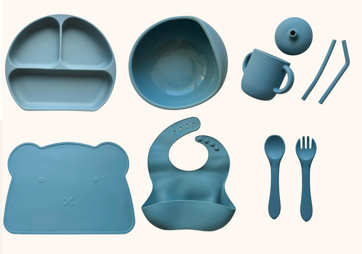Набір дитячого силіконового посуду "Базовий з килимком" Димний блакитний (2770383027)