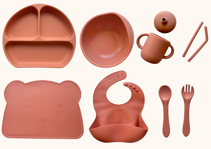Набір дитячого силіконового посуду "Базовий з килимком" Персиковий (2770383025)
