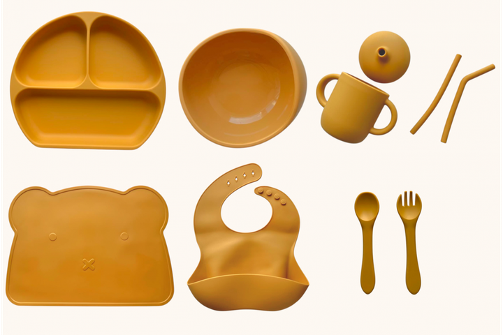 Набір дитячого силіконового посуду "Базовий з килимком" Гірчиця (2770383029)