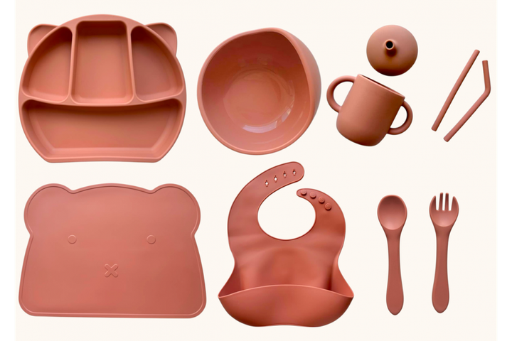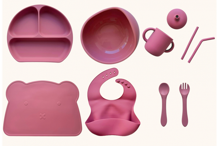 Набір дитячого силіконового посуду "Базовий з килимком" Димна троянда (2770383028)