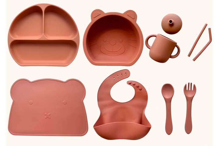 Набір посуду (слинявчик, ніблер, поїльник, глибока тарілка, силіконові прибори)