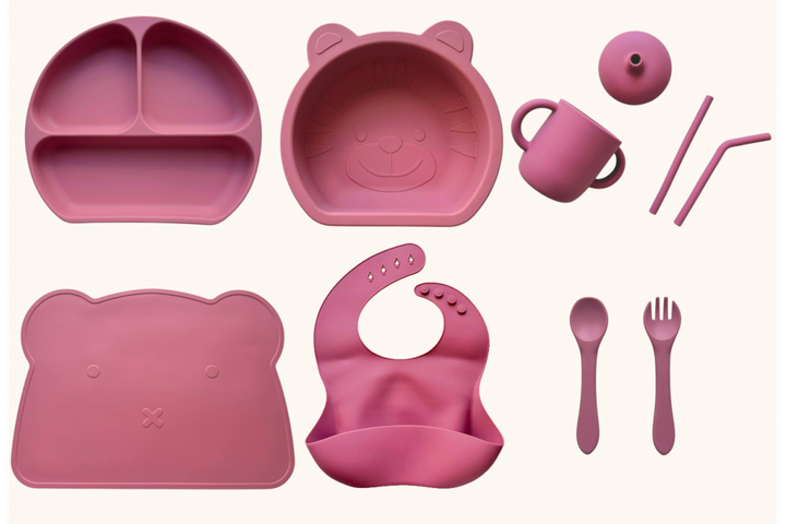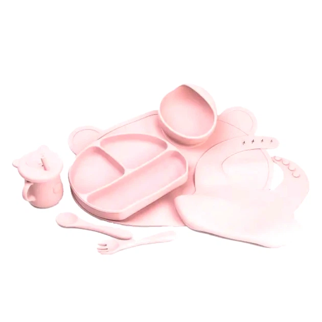 Дитячий набір силіконового посуду 7 предметів Рожевий безпечний посуд для малюків для годування та ігор (523336)