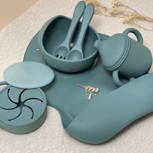 Набір посуду із харчового силікону для першого прикорму 7 шт. смарагдовий
