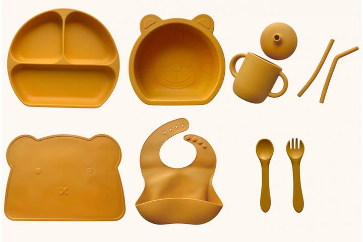 Набір комплект силіконового дитячого посуду 5 предметів Горчица