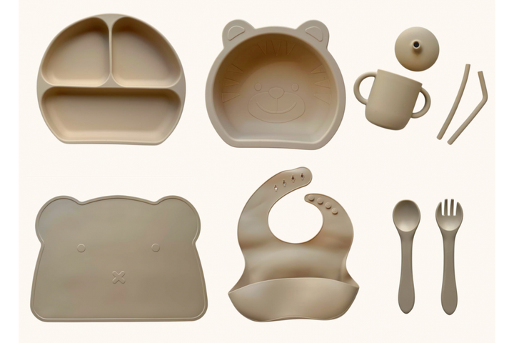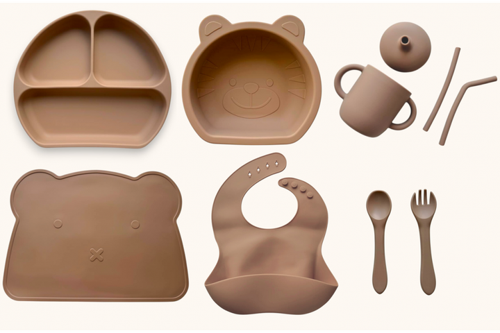Набір дитячого силіконового посуду "Базовий з килимком. Левик" Капучіно (2770382990)