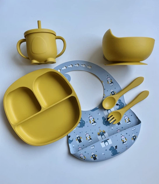 Дитячий набір силіконового посуду 7 предметів Зелений 4808190