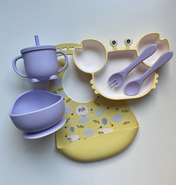 Набір дитячого силіконового посуду Крабик жовтий-лаванда