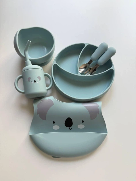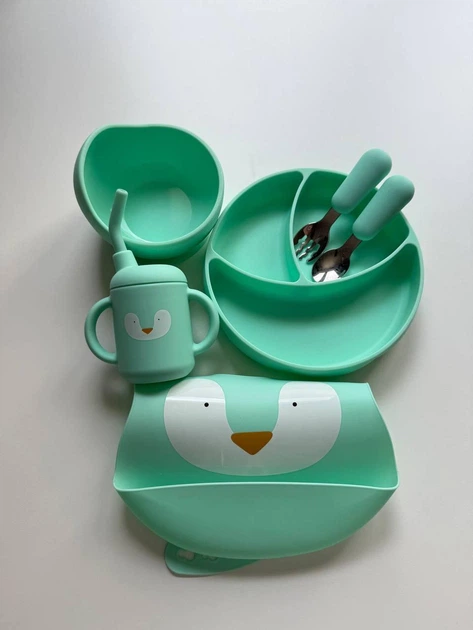 Набір силіконового посуду для дітей, 6 в 1, дитячий посуд для прикорму Мятний