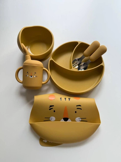 Набір силіконового посуду для дітей, 6 в 1, дитячий посуд для прикорму Гірчиця