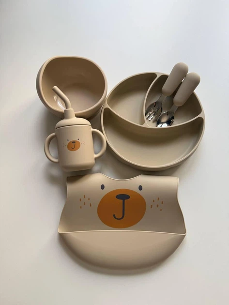 Набір силіконового посуду для дітей, 6 в 1, дитячий посуд для прикорму Бежевий