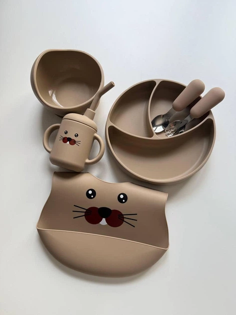 Набір силіконового посуду для дітей, 6 в 1, дитячий посуд для прикорму Капучино