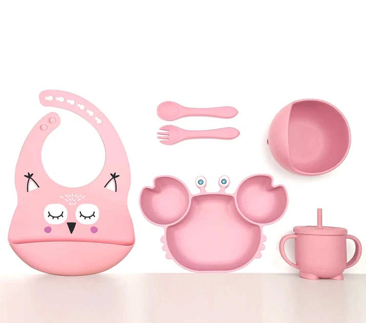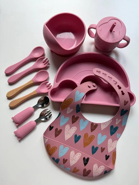 Набір дитячого силиконового посуду із 6 предметів із безпечного та харчового силикону Rose Quartz