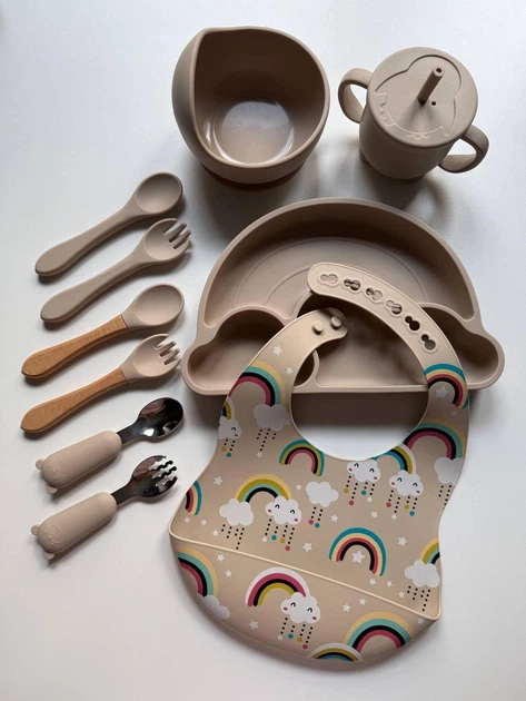 Силіконовий набір посуду для прикорму, подарунковий набір дитячого посуду, пакунок малюка Капучино