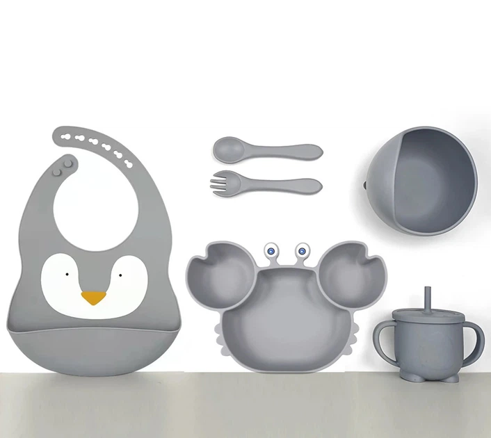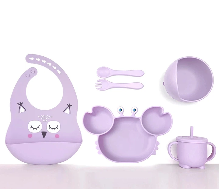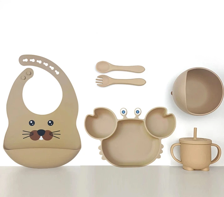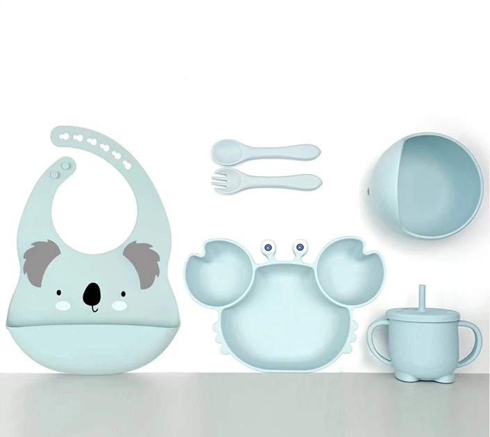 Набір посуду для годування дітей із 4 предметів із 100 харчового безпечного силікону Little Crab