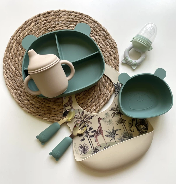 Набір силиконового посуду для дітей на 6 предметів із якісного, безпечного та харчового силикону Little Bear