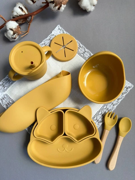 Набір дитячого посуду для прикорму Єнотик Манго Гарний набір посуду Яскравий комплект для першого прикорму (0003)